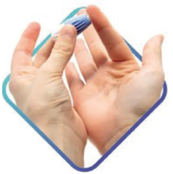 • Align the lancet against your chosen fingertip and press firmly down to activate the lancet’s internal spring. Expect resistance before it activates. This will puncture the skin.
