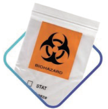 • Fold the biohazard bag down in size and place it into the prelabeled envelope.